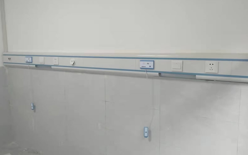 病房床頭吸氧裝置選用優(yōu)質(zhì)鋁合金設(shè)備帶上安裝氧氣終端、呼叫器分機(jī)、電源開關(guān)插座、床頭燈。