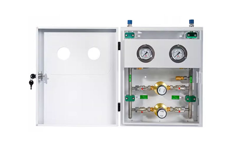 名稱:雙路氧氣減壓箱 | 流量:≥800L/min | 材質(zhì):鋁合金、不銹鋼 |