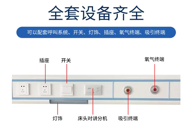 端口(床位)數(shù)量 | 管道與管道設(shè)備、病房設(shè)備帶、氣體終端、呼叫對(duì)講系統(tǒng)、配電照明 | |||