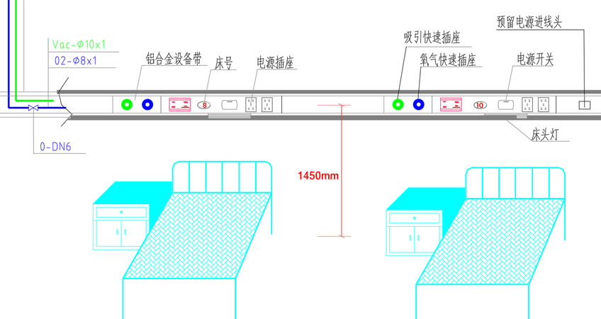 病房床頭氧氣、吸引、呼叫、配電設(shè)備帶要求: