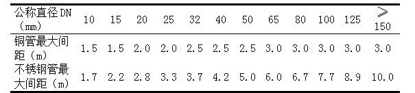 表1醫(yī)用氣體水平直管道支吊架最大間距