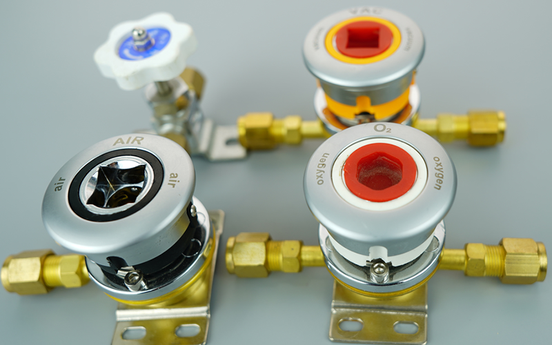 德標氣體終端常用的有氧氣(O2)、吸引(VAC)、空氣(AIR)終端