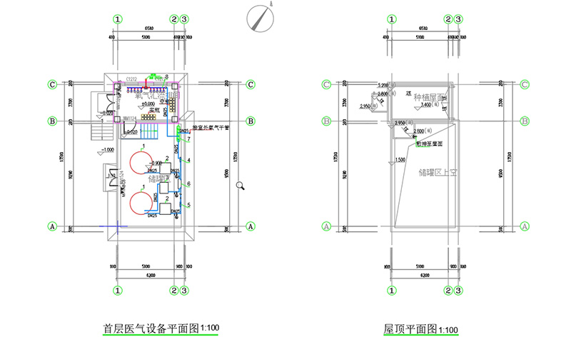 氧氣、笑氣匯流排間的電氣設(shè)備(燈、開關(guān)、排風(fēng)扇等)應(yīng)采用防爆型的;室內(nèi)、室外地面若有高差,應(yīng)有斜坡過度,以便氣瓶的運(yùn)輸。